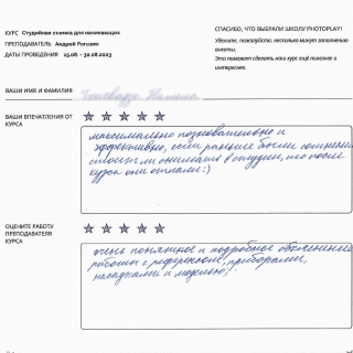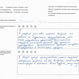Студентам курса предоставляется скидка 15% на аренду студий на срок три месяца после его окончания.