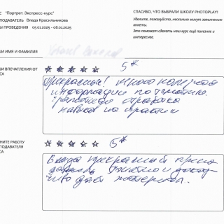 Посетите ближайший Пробный урок с Владой Красильниковой, чтобы познакомиться с преподавателем и получить новые знания в портретной фотографии.