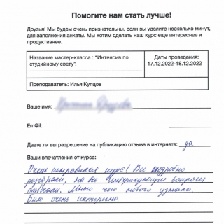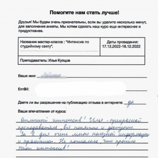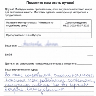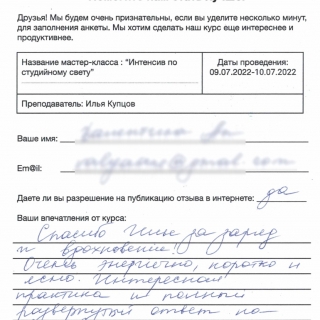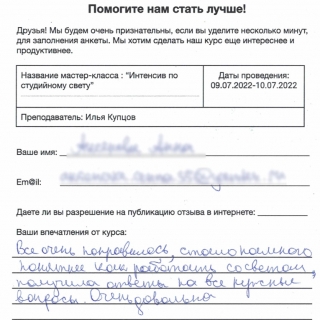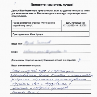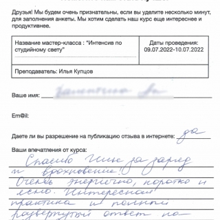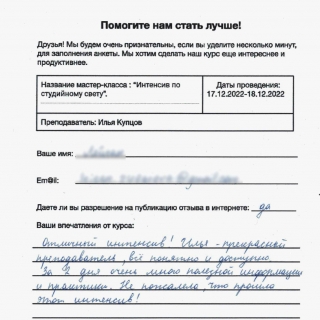 Интенсив по студийному свету