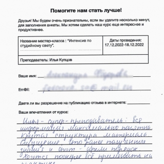 — имеете опыт студийной съёмки, но хотели бы прокачать и систематизировать свои знания.